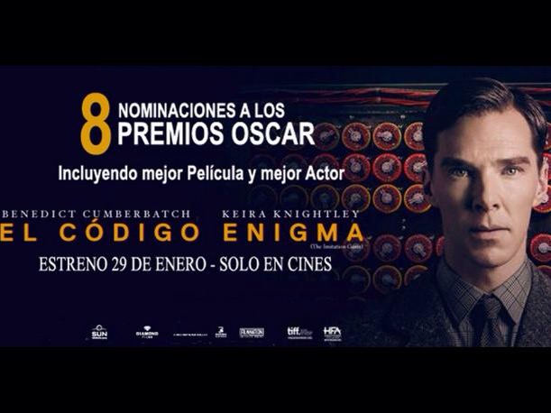 «El código enigma» es una película dirigida por Morten Tyldum y protagonizada por Benedict Cumberbatch y Keira Knightley que obtuvo 8 nominaciones en los Oscar 2015, incluyendo Mejor Película , Mejor actor protagónico y una estatuilla por Mejor Guión Adaptado.