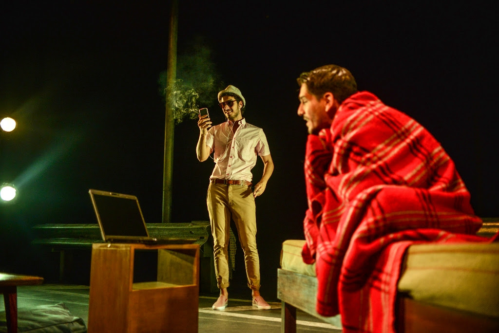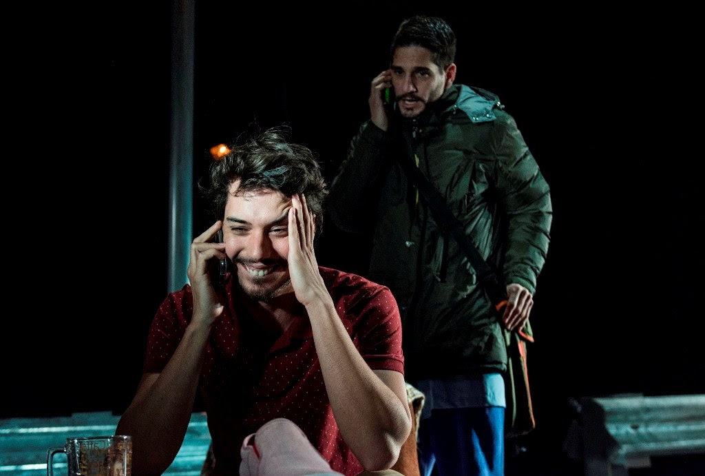 ¡Qué enorme desafío para dos actores: estar a pocos metros uno del otro, a veces casi rozándose o caminando en círculos paralelos, y nunca tomar contacto con el cuerpo del otro, ni siquiera mirarse! ¡Qué demanda de concentración y escucha mutua! Porque en Próximo, Elián (Santi Marín) y Pablo (Lautaro Perotti), tienen una historia de amor a distancia, gracias a las posibilidades que brinda internet, y aunque los vemos compartiendo el espacio escénico, ellos se ven por una pantalla, o por varias… No se conocen personalmente: uno está en España, el otro en Australia. A medida que avanza la trama, se convierten en lo único con lo que el otro puede contar, pero a la distancia.