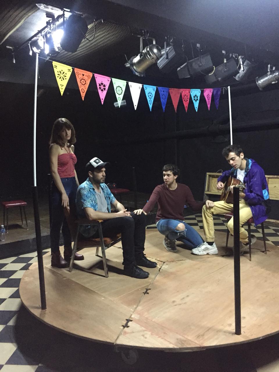 Los cuatro jóvenes intérpretes (Salome Boustani, Marco Gianoli, Guido Botto Fiora y Claudio Mattos) brindan actuaciones muy frescas que acercan esos conflictos cotidianos al espectador y logran momentos de humor y de reflexión, en un justo equilibrio. Ese tono distendido y de empatía responde perfectamente a la dirección, también a cargo de Lorena, que propone una puesta con canciones y un dispositivo escénico que es una especie de calesita, muy funcional al planteo que nos recuerda tácitamente la letra de A Rodar, mi vida, la canción de Fito Páez: “Yo no sé dónde va mi vida, yo no sé dónde va pero tampoco creo que lo sepas vos…”