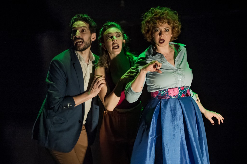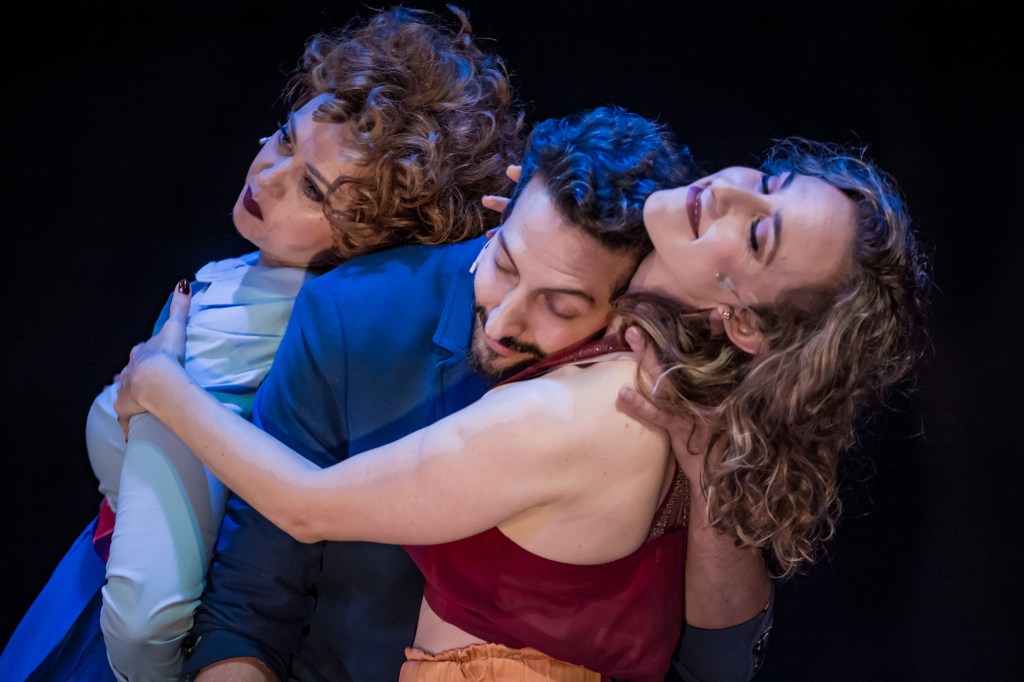 El trío de intérpretes compuesto por Dolores Ocampo (que hace gala de su gran ductilidad y se “come” la obra), Belén Pasqualini (que por momentos deslumbra con la potencia e intensidad de su voz, en particular en su última salida cantando acapella), y Sebastián Holz (quien además formó parte del equipo creativo) alterna monólogos y canciones, acompañados en escena por un trío de músicos bajo la dirección de Carlos Britez, quien además toca el piano, Mario del Risco en trompeta, violín y flauta, y Clement Silly en violonchelo, y un preciso y atractivo diseño coreográfico y de luces.