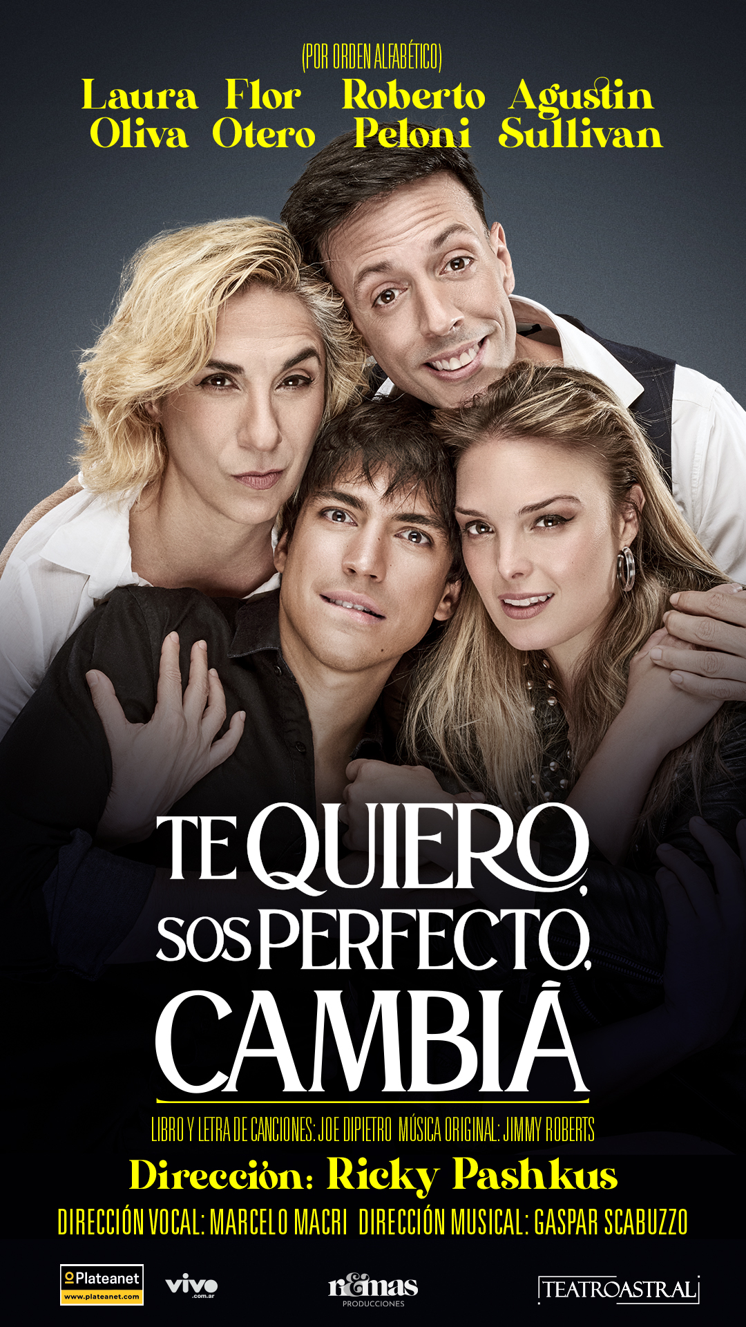 Con dirección general de Ricky Pashkus, el pasado 7 de enero estrenó en el Teatro Astral una obra del off Broadway que ya se había estrenado en nuestro país anteriormente. La nueva versión vuelve a tener a Pashkus como director general y a Roberto Peloni, Laura Oliva, Florencia Otero y Agustín Sullivan como protagonistas.