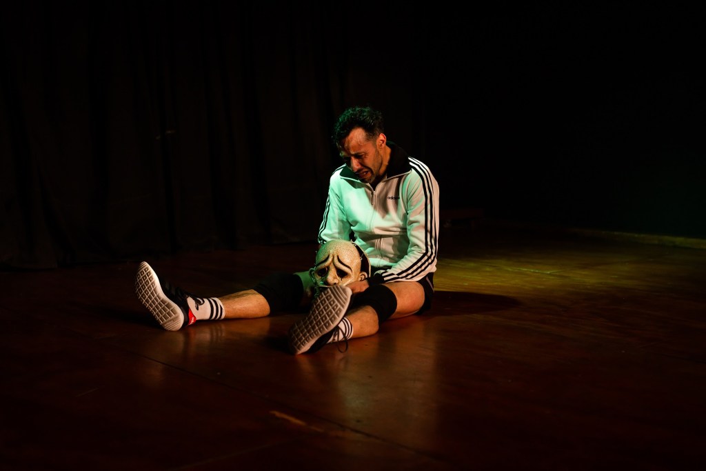 Enmarcado por las enormes palmeras del patio como columnas de un proscenio, Savignone se adueña del amplio espacio escénico, recuperando con maestría el papel de las máscaras, convirtiendo prendas deportivas y objetos en recursos impensados, bailando, cantando, tocando la guitarra, dividiéndose y multiplicándose en aspectos que dialogan entre sí, tironean, saltan la cuarta pared y conversan en comentarios metateatrales.