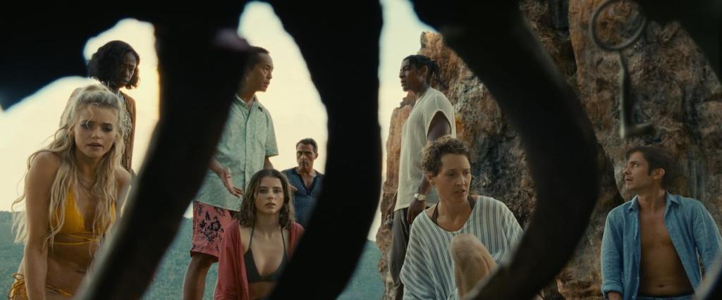Shyamalan va directo al asunto principal sin demasiados rodeos. En un primer momento el director presenta el contexto en el cual se desarrolla la trama, un hotel resort ubicado en un lugar paradisiaco, y a la familia protagonista de la historia, un matrimonio a punto de disolverse con dos hijos pequeños. Por otro lado, otro dos grupos de huéspedes son presentados en breves escenas. Algo que caracteriza a los personajes de este filme son sus diferencias, el director ha decidido poner un foco muy importante en naturalizar las particularidades de edad, altura y raza de estos matrimonios y grupos familiares.