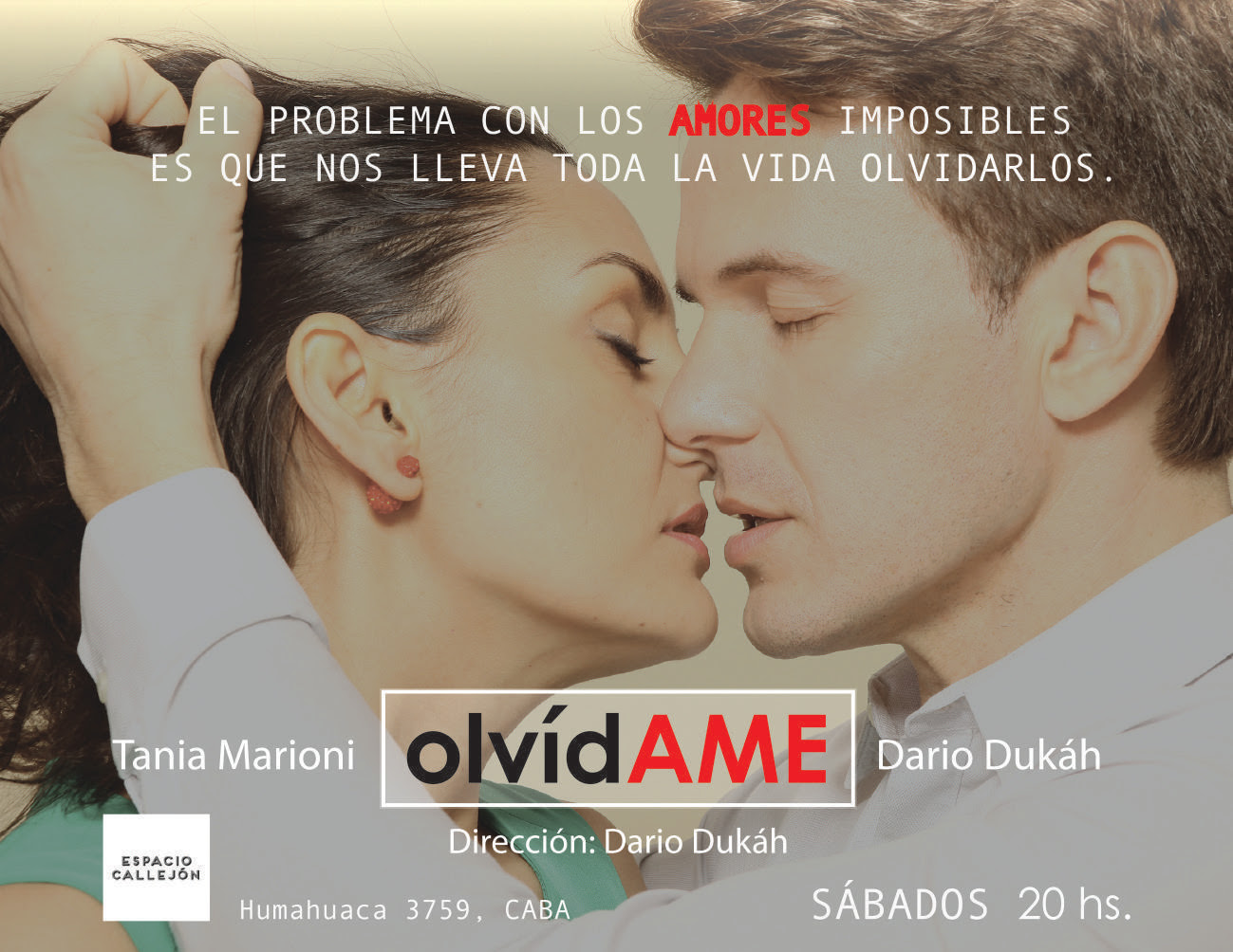 En esta visita disfruté Olvídame, una muy entretenida pieza corta de Marco Antonio De La Parra, en versión libre de Dario Dukáh, que además está a cargo de la dirección de esta atractiva propuesta. La historia podría resumirse en los primeros versos del clásico bolero Inolvidable: “En la vida hay amores que nunca pueden olvidarse”, que se escucha en varios momentos, casi a modo de leitmotiv. Ana y Juan son una pareja de amantes que se reencuentran en un bar para verse después de bastante tiempo. Sentados frente a frente en una mesa de café repiten un “cómo estás” que parece interminable y se mienten un “nunca más” imposible porque los cuerpos los traicionan desde el recuerdo de un deseo imborrable.