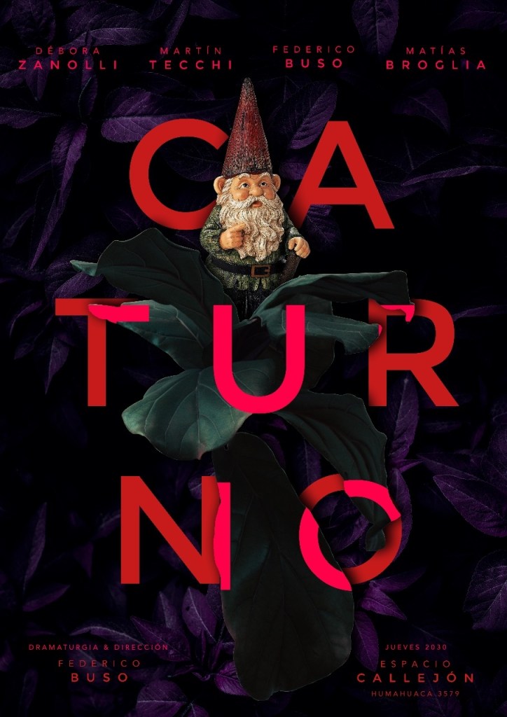 Dentro de la nutrida cartelera del Espacio Callejón se ubica Caturno, obra que relata la historia de dos hermanos que trabajan en un vivero junto a una mujer que los une de una manera particular. La aparición de otro hombre que intenta ganarse su corazón genera en los hermanos sentimientos encontrados.