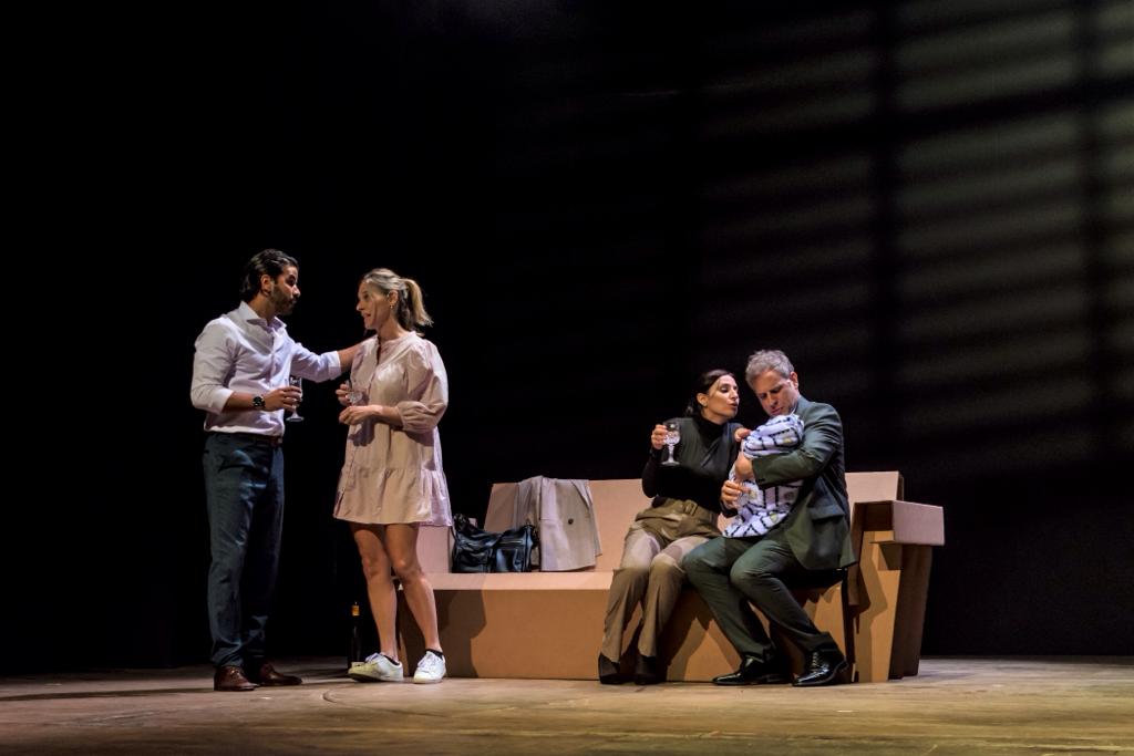 Aunque el intervalo juega un poco en contra del ritmo y corta el crescendo dramático al entrar en la segunda parte, el elenco coral transita con fluidez y ductilidad el devenir de estas parejas que se arman y se desarman, casi en espejo con la escenografía modular (que parece “un modelo para armar” de cartón) y que va reflejando cómo el agradable status quo inicial se va convirtiendo en el caos de una barricada cuando se da vuelta la situación y se cambian los papeles.