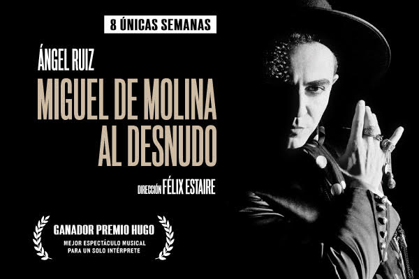 Miguel de Molina al desnudo es un unipersonal protagonizado por Ángel Ruiz, bajo la dirección de Félix Estaire, que se estrenó en Madrid en noviembre de 2014, en el Teatro Infanta Isabel. En 2022 el espectáculo hizo una breve escala de muy poquitas funciones en Argentina, que le bastaron para deslumbrar al público y la crítica, y alzarse con el Premio Hugo al Mejor Espectáculo Musical para un Solo Intérprete. Afortunadamente para aquellos que nos perdimos la mini temporada del año pasado, el 2 de junio del 2023 el espectáculo volvió a subir el telón en la bella e íntima sala del Picadero por 8 únicas semanas.