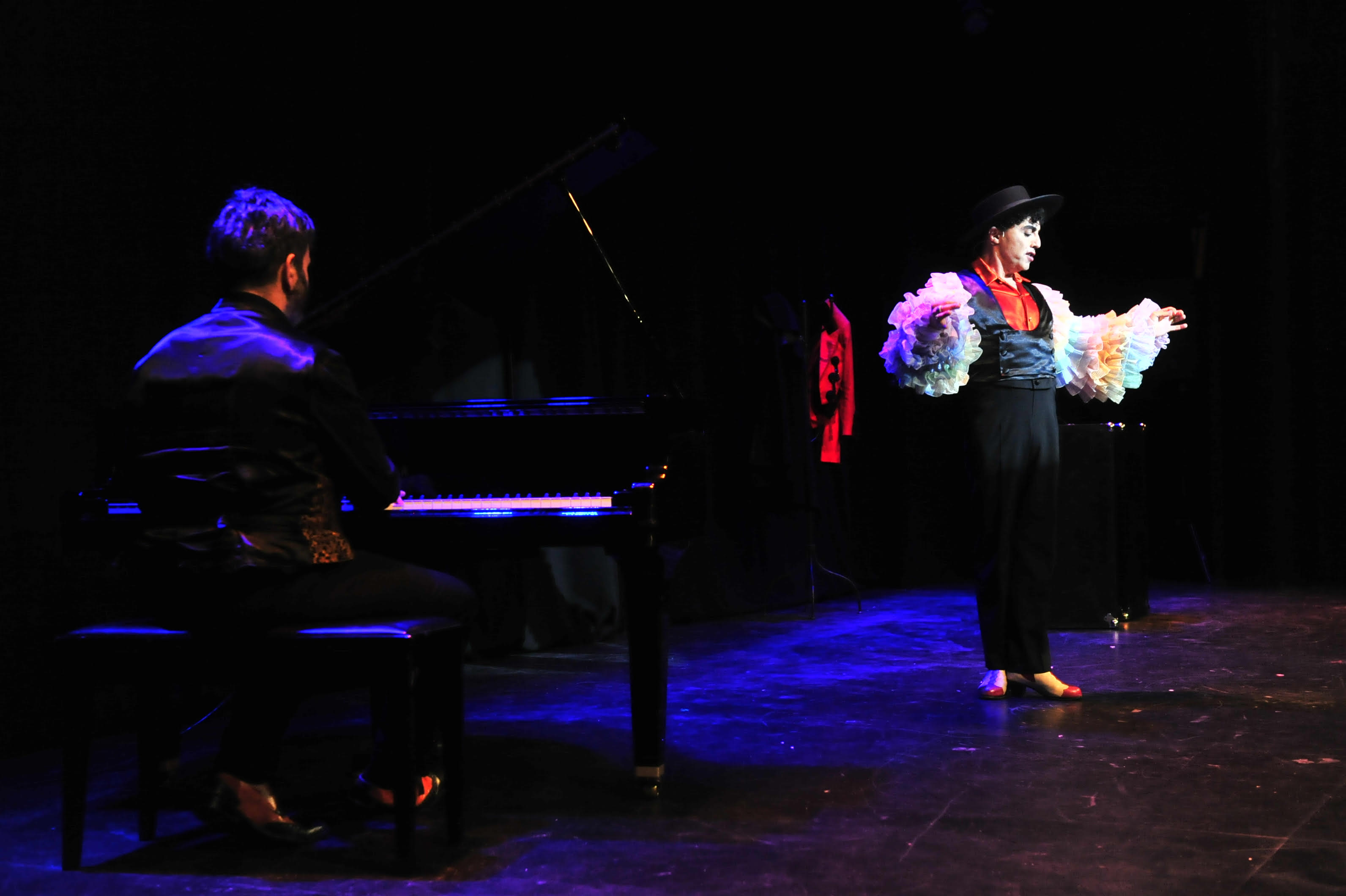 El escenario completamente despojado, con un piano solitario ante un telón negro, se ilumina cuando el protagonista domina el espacio bajo la luz cenital que recorta la sombra de su figura. Ángel Ruiz se adueña del centro de la escena y despliega un carisma extraordinario para evocar la irreverente e inimitable personalidad del artista malagueño. El intérprete hace gala de un vestuario típico, con el inconfundible sombrero y blusas de lunares, con caireles y anillos, pero lo que resulta realmente deslumbrante es su talento y su voz que se luce en canciones como “Ojos verdes”, “La bien pagá”, “Me da miedo de la luna”, “El zorongo gitano”, “Te lo juro yo”, entre otras.