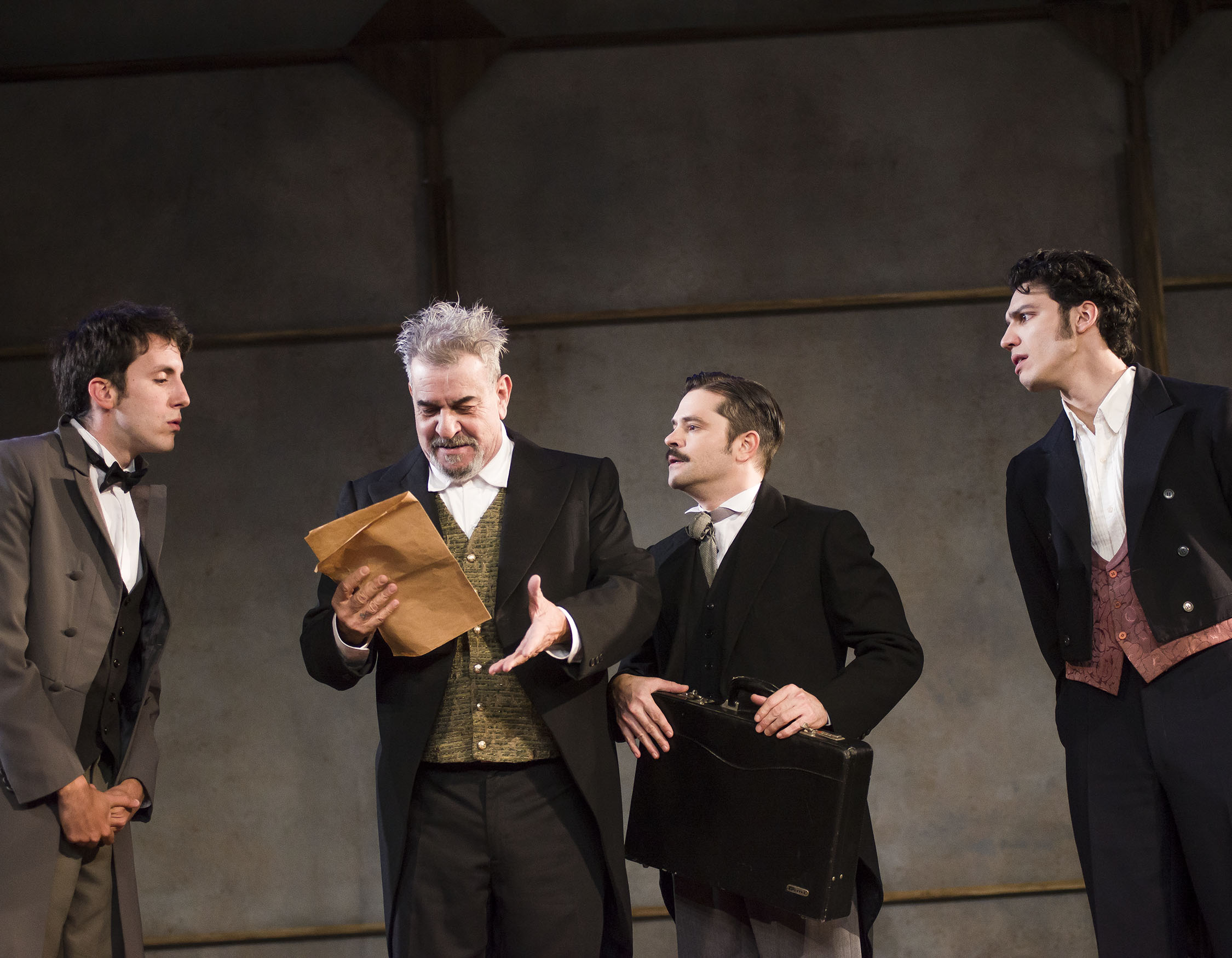 La acción en la que vemos el detrás de bambalinas se despliega con mucho movimiento, constantes entradas y salidas de elementos de utilería para crear diversos espacios dentro del enorme escenario, y vertiginosos cambios del nutrido elenco que funciona como una compañía de repertorio. Allí también vemos una performance un tanto despareja entre los protagonistas más jóvenes (Felipe Colombo como Edmond y Vanesa González como su musa inspiradora), quienes luchan a lo largo de dos horas por encontrar el registro y los matices que exigen sus personajes, a diferencia de los actores de carácter, por ejemplo la dupla de Luis Longhi y Abián Vainstein, que aportan experiencia, gracia y presencia escénica aunque tengan varios papeles con intervenciones pequeñas.