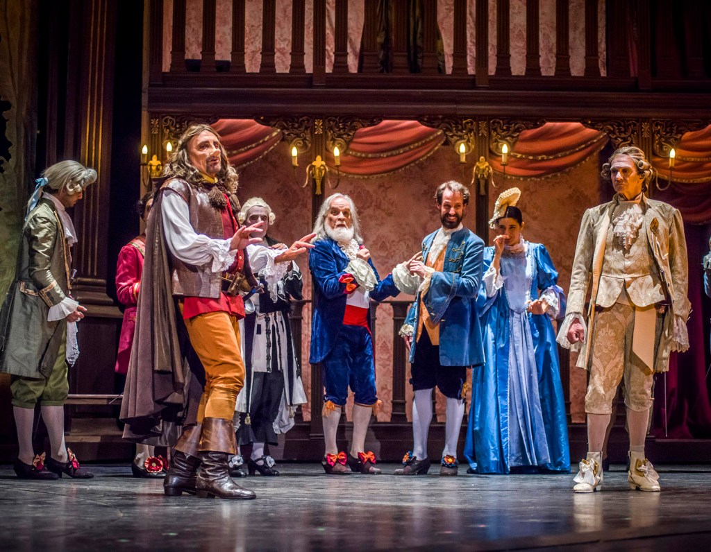 La primera parte de la pieza, en donde se presentan los personajes, se contextualiza al espectador en tiempo y lugar, y se recorren las líneas de la trama con una preponderancia de la comedia, es impecable. La segunda parte de la pieza, en la que las acciones toman un giro dramático, no abandona la excelencia en los rubros técnicos, pero peca de ambiciosa en algunas decisiones. Quizás el afán de fidelidad hacia el texto original de este Cyrano monumental de tres horas de duración conspira contra un mayor impacto en la resolución de los conflictos y situaciones planteadas. Dada la logística que implica la recreación de los espacios de los distintos actos, si bien este Cyrano pone en juego muchos recursos y resulta visualmente imponente, por momentos se empantana y no logra sostener la contundencia dramática y los aciertos que sí se aprecian en la primera parte, a través de un diseño escenográfico y vestuario de gran belleza y algunos guiños en los interludios musicales que invitan a los Beatles a colarse en los salones de la sociedad parisina del siglo XVII.