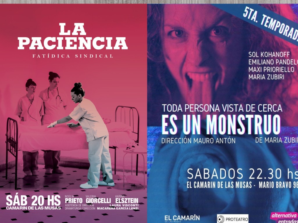 Los sábados a la noche en El Camarín de las Musas (Mario Bravo 960) se puede disfrutar de un doblete teatral más que interesante y diverso, por un lado «La paciencia«, de Macarena Garcia Lenzi, a las 20.30 hs y, a las 22.30 hs, con el tiempo justo para cenar algo en el amigable restaurante del lugar, «Toda persona vista de cerca es un monstruo«, de Maria Zubiri, con dirección de Mauro Anton (5ta temporada).