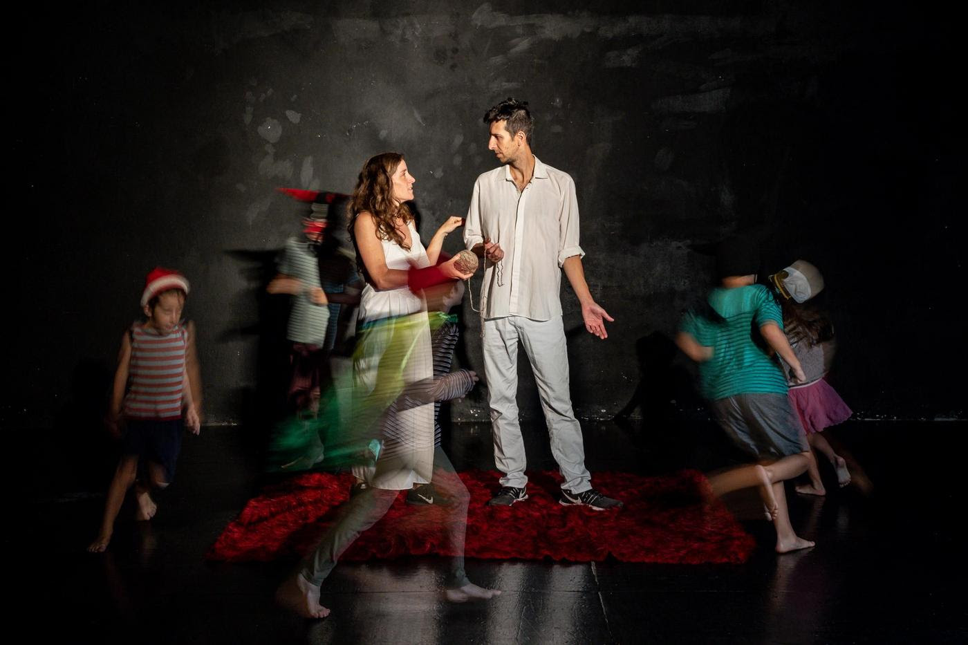 El Camarín de las Musas es un espacio acogedor que además de sus dos salas cuenta con una cafetería-restaurante que resulta bueno, bonito y barato para hacer tiempo y comer algo rico entre función y función. Además de la sala del fondo, donde se presentan algunos éxitos del off como La Pilarcita o La Paciencia, este teatro escuela cuenta con una sala más pequeña bajando la escalera, que se presta a indagar en diversos aspectos y propuestas de teatro experimental, como en el caso de La gravedad de las burbujas. Su autor y director, Juan Pablo Galimberti, se propuso investigar narrativas simultáneas en donde tres situaciones diferentes que transcurren al mismo tiempo se representan en un mismo espacio escénico. Galimberti cuenta que tras “una investigación site specific en las instalaciones de una casa en el barrio de La Paternal y una residencia artística en el CC25 (Centro Cultural 25 de Mayo), la obra se estrenó en el Camarín de las Musas en abril del 2024, en una versión en donde la cercanía y la teatralidad permiten abordar un material innovador. Esta obra forma parte del Proyecto Esferas, un conjunto de obras y prácticas que investigan la fusión de lenguajes artísticos, en búsqueda de amplificar la percepción y repensar los modos de vinculación entre los seres que habitan este mundo y quizás desde ahí, construir otros mundos posibles”.