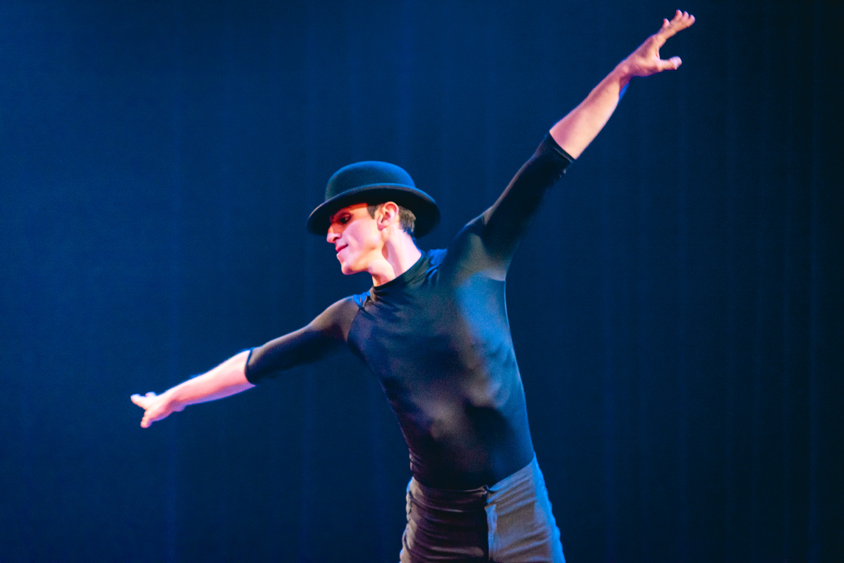 Todos hacen un trabajo impecable pero la pareja central merece un párrafo aparte: Yerar Perez, que irrumpe vestido de negro y se mete en la piel de Bob Fosse, con su silueta esbelta, casi altanera para dejarnos sin aliento con su magnética interpretación del cuadro de Mr. Bojangles. Y Romina Fos, que nos deslumbra con la belleza de la Gwen de las piernas increíbles en la plenitud de su arte, capaz de conquistar a toda la sala que la cubre de “bravos” como si le arrojaran una catarata de flores en su saludo final.