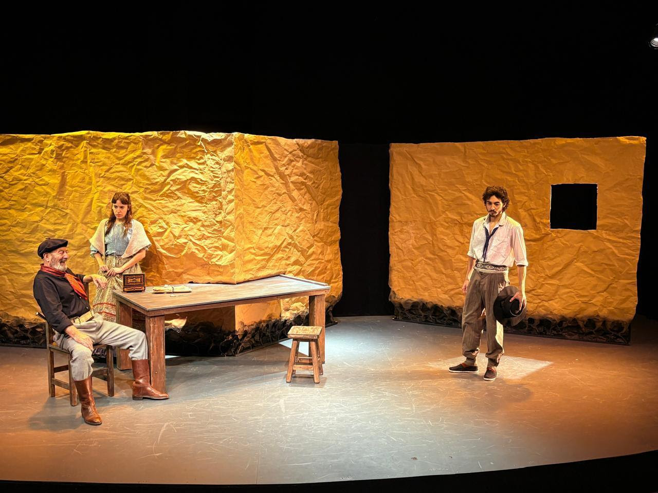 La escenografía, realista pero minimalista, nos transporta a un rancho en la llanura pampeana a finales del siglo XIX. Allí viven Avellino (Vando Villamil), el patrón, y Matilde (Antonia Bengoechea), una joven casada con él, mucho mayor que ella, como prenda de intercambio entre familias.