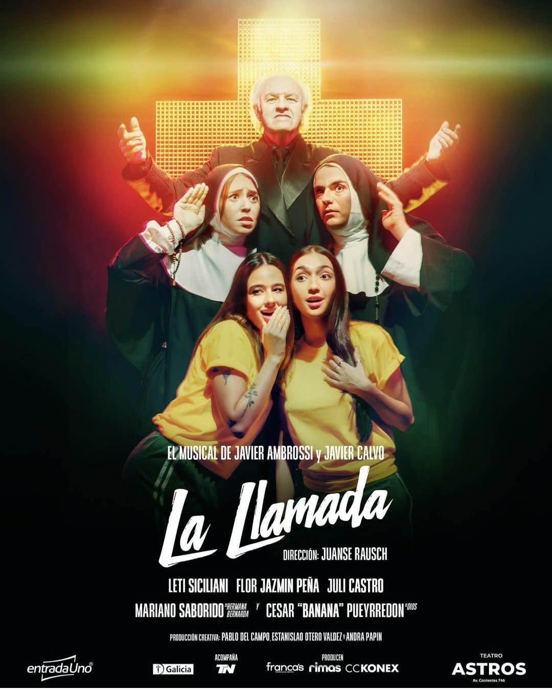 La llamada es un delirante musical de “Los Javis” (Javier Ambrossi y Javier Calvo, aclamados creadores españoles de Paquita Salas, La Veneno y La Mesías), que es como el lado A de El exorcista, mezclado con algo de El diluvio que viene y Mean Girls pero a la Almodóvar. La versión local, dirigida por Juanse Rausch, cuenta con la presencia de César Banana Pueyrredón, interpretando las canciones de la incomparable Whitney Houston, y un elenco que aporta momentos de comedia disparatada, a través de las monjas (Leti Siciliani y en la función del martes pasado Lucas Spadafora en reemplazo de Mariano Saborido), más el ritmo y color de las coreos a cargo de las chicas que son divinas (Juli Castro y su pelo increíble, y Jazmín Peña, la Rachel Berry argentina).